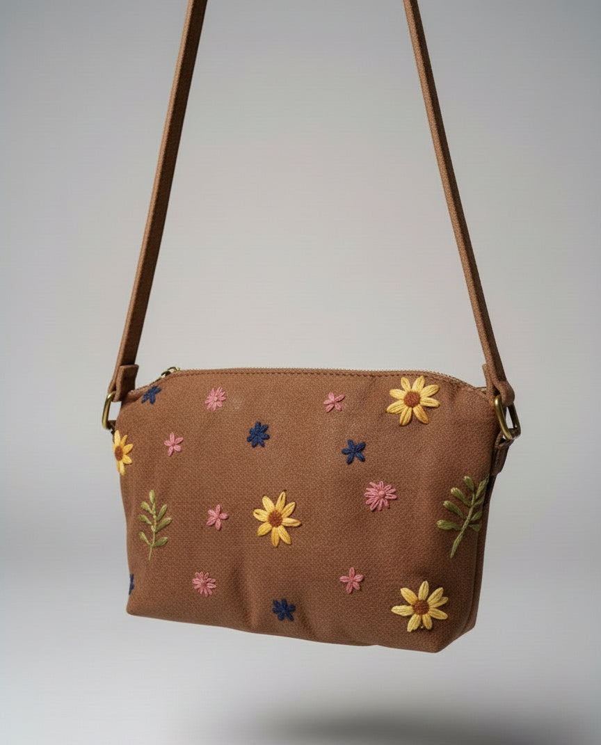 This crossbody combines style and practicality with its style and embroidered floral motifs. With leather strap and a printed lining, it also offers inner 1 pouch and a zipper pocket. Perfect for any fashion lover on the go!
